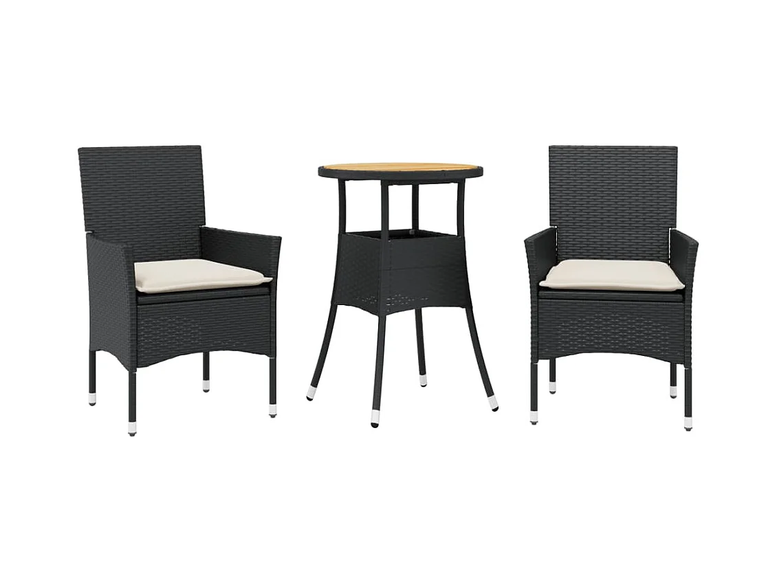 Ensemble à manger de jardin et coussins 3 pcs noir rotin acacia FR16854