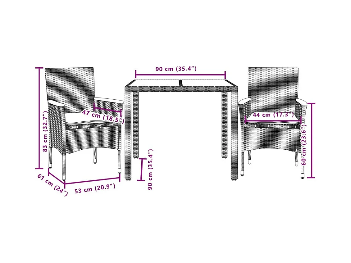 Ensemble à dîner de jardin avec coussins 3 pièces Beige poly rotin