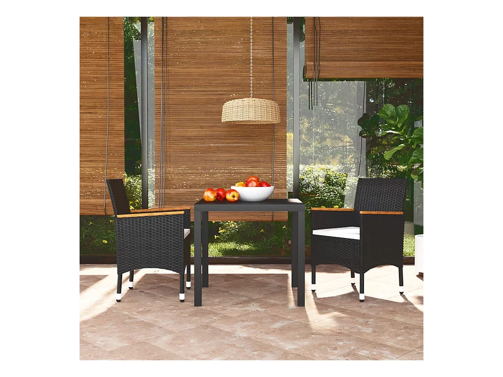 Ensemble à manger de jardin avec coussins 3 pcs Noir FR13490