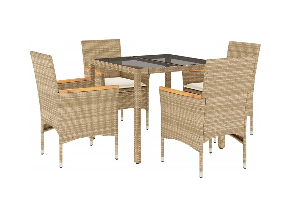 Ensemble à manger de jardin et coussins 5pcs beige rotin acacia