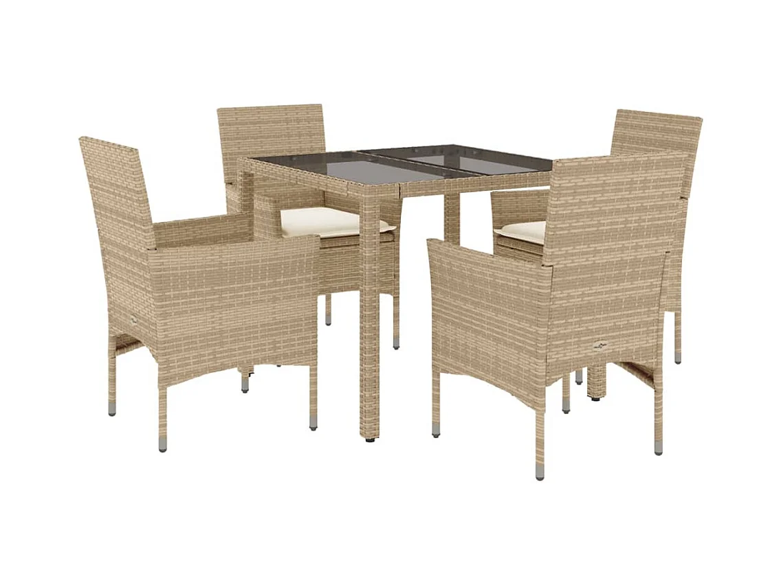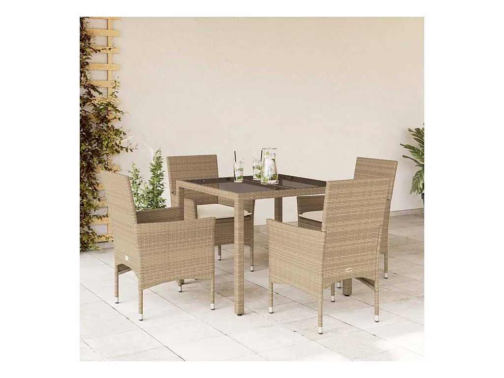 Ensemble à manger de jardin et coussins 5 pcs beige rotin verre