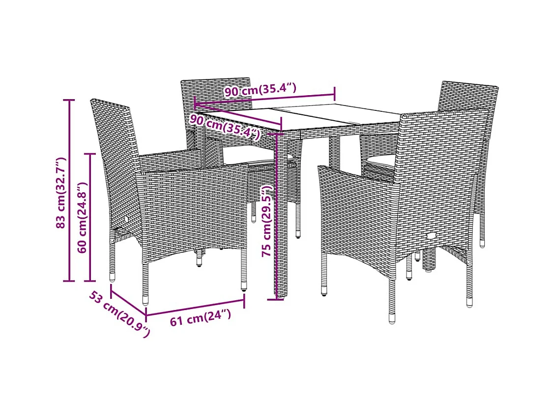 Ensemble à manger de jardin 5 pcs coussins gris résine tressée