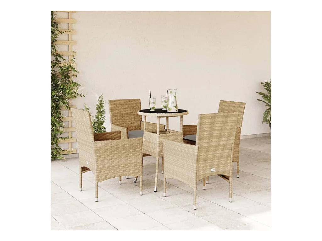Ensemble à manger de jardin et coussins 5 pcs beige rotin verre FR67376