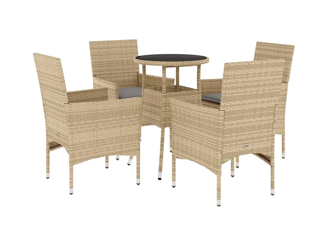 Ensemble à manger de jardin avec coussins 5pcs Beige poly rotin FR88005
