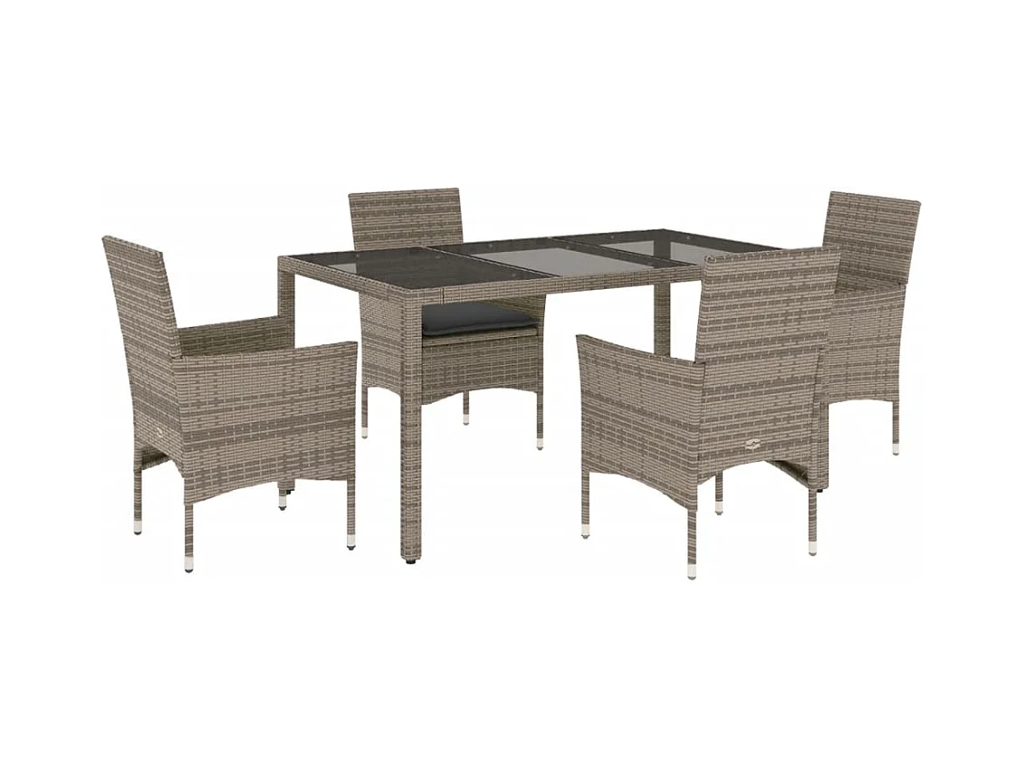 Ensemble à manger de jardin et coussins 5 pcs gris rotin verre