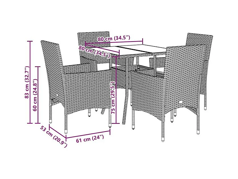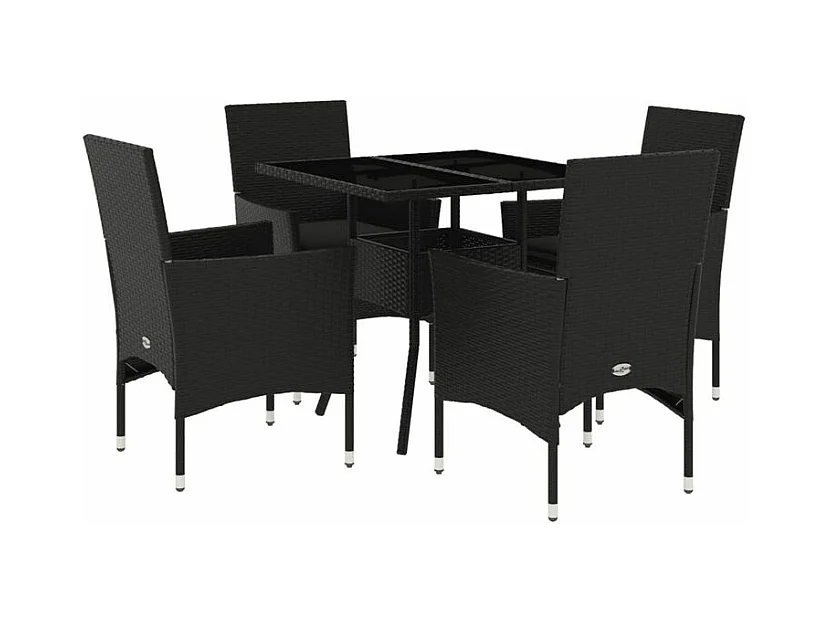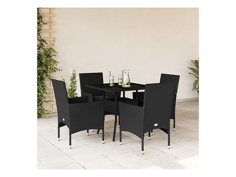 Ensemble à manger de jardin et coussins 5 pcs noir rotin verre
