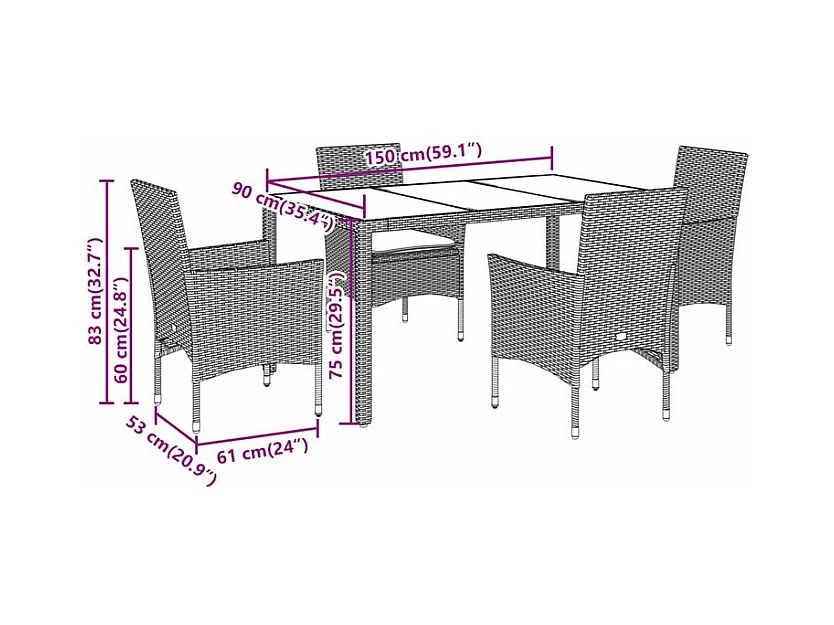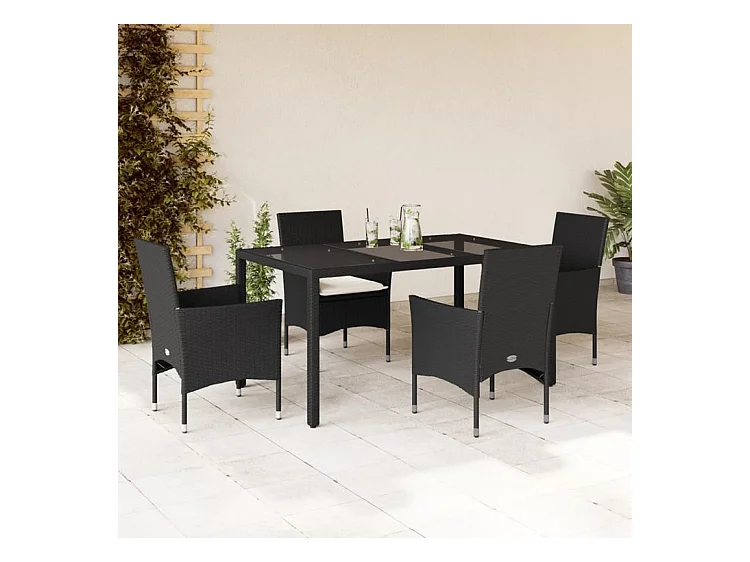 Ensemble à manger de jardin et coussins 5 pcs noir rotin verre