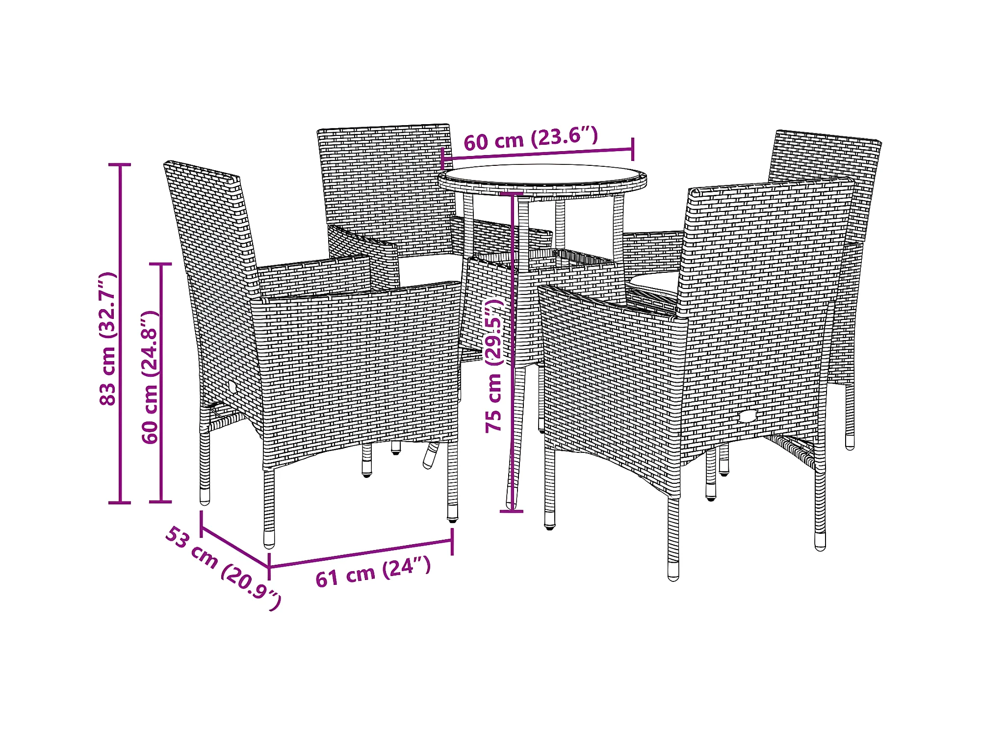 Ensemble à manger de jardin et coussins 5 pcs noir rotin verre