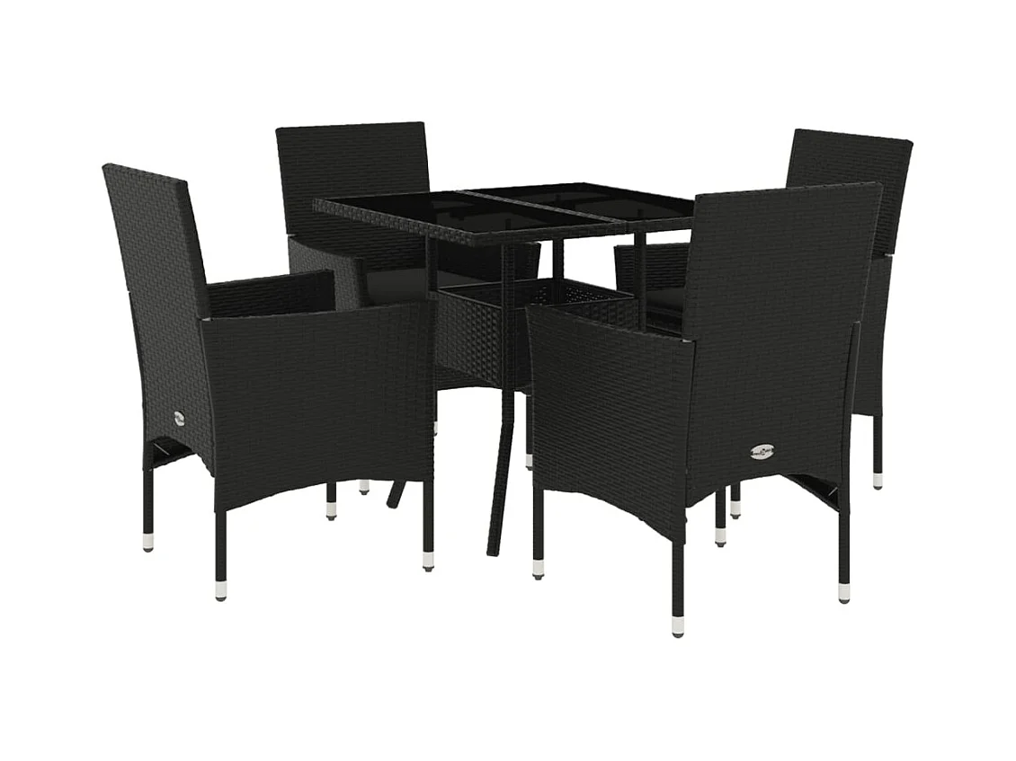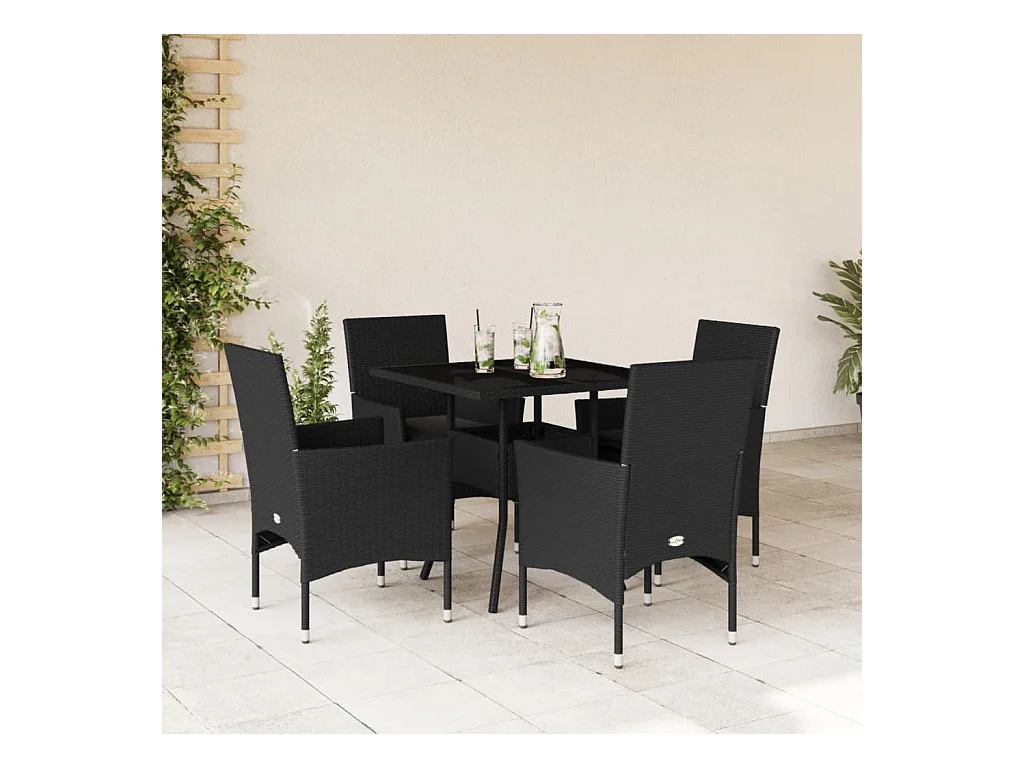Ensemble à manger de jardin et coussins 5 pcs noir rotin verre FR51079