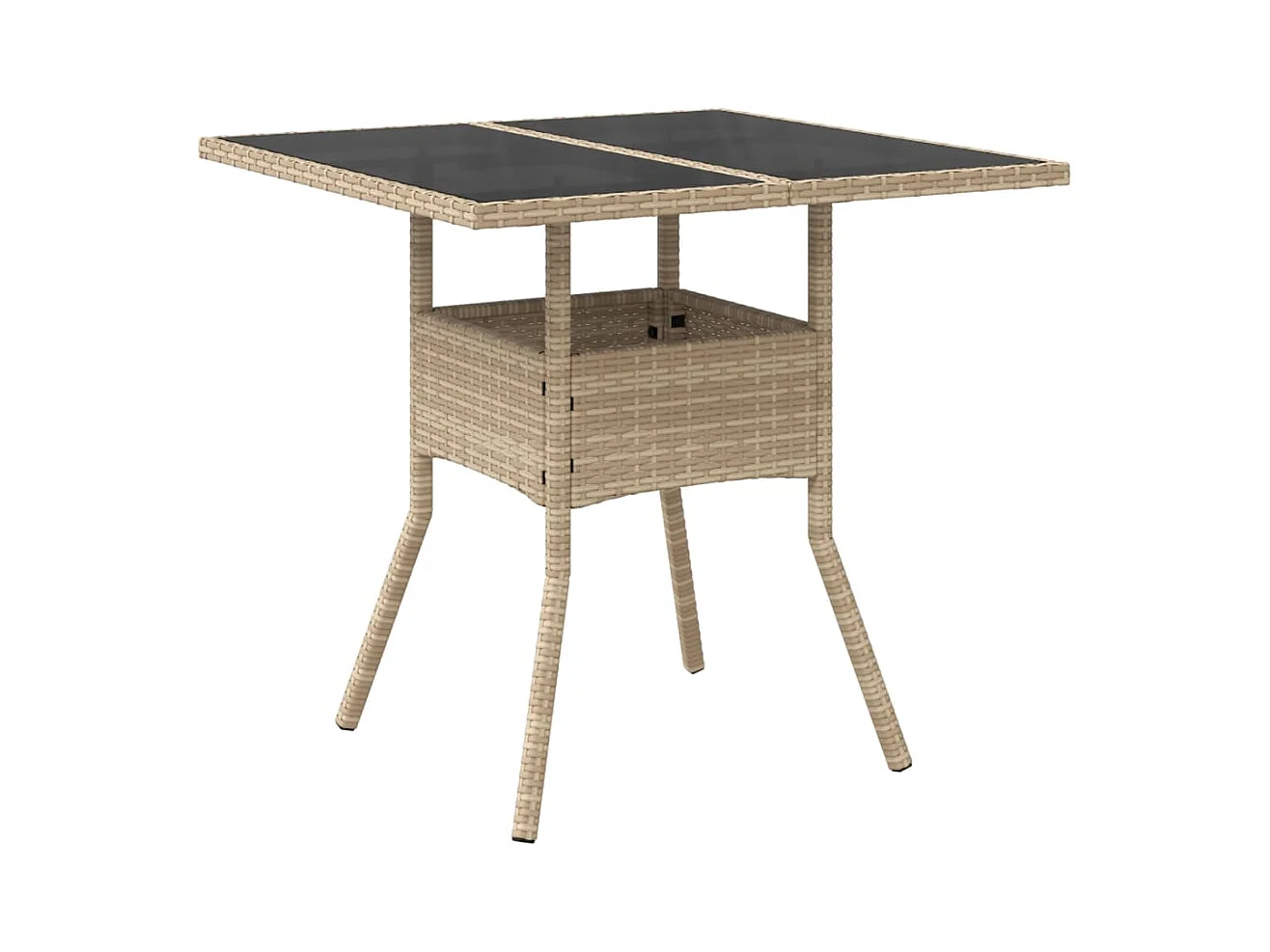 Ensemble à manger de jardin et coussins 5 pièces beige rotin verre