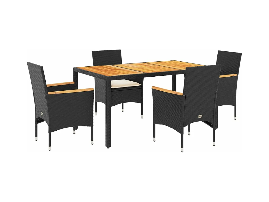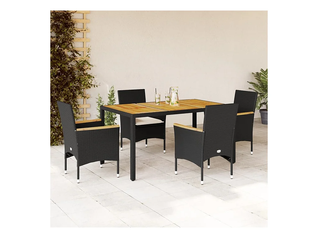 Ensemble à manger de jardin et coussins 5 pièces noir rotin acacia