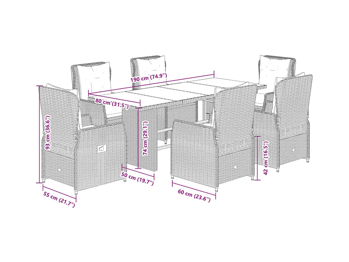 Ensemble à manger de jardin et coussins 7 pcs gris rotin