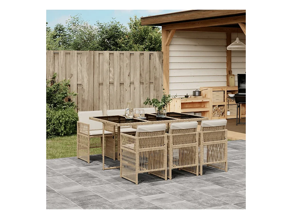 Ensemble à manger de jardin et coussins 7 pcs beige poly rotin