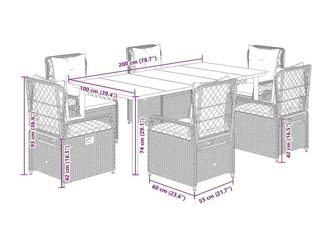 Ensemble à manger de jardin et coussins 7 pcs gris clair rotin