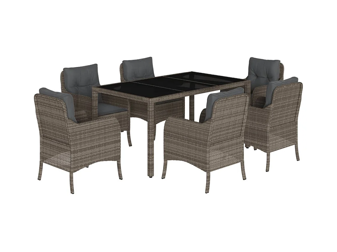 Ensemble à manger de jardin et coussins 7 pcs gris rotin verre