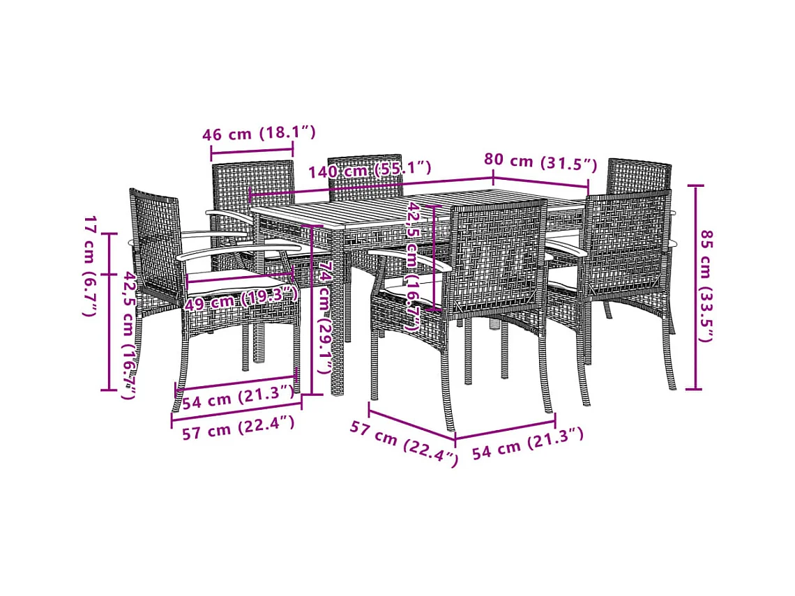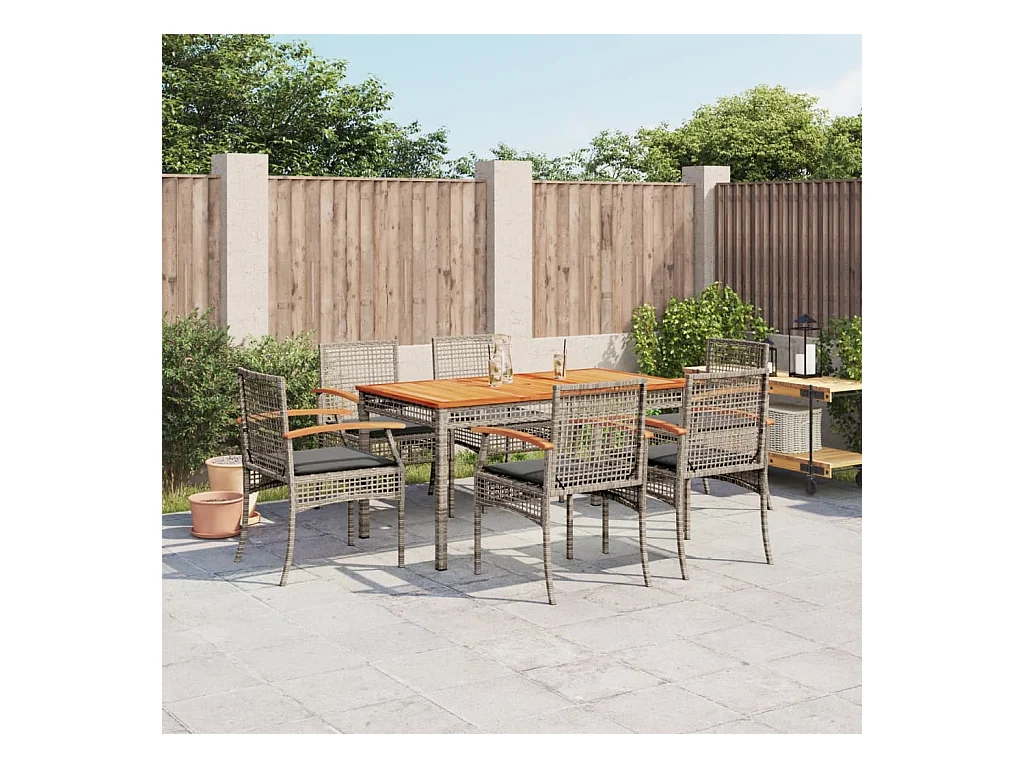 Ensemble à manger de jardin et coussins 7 pcs gris rotin