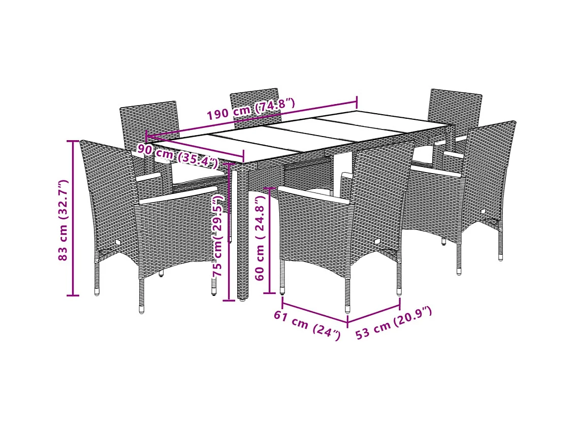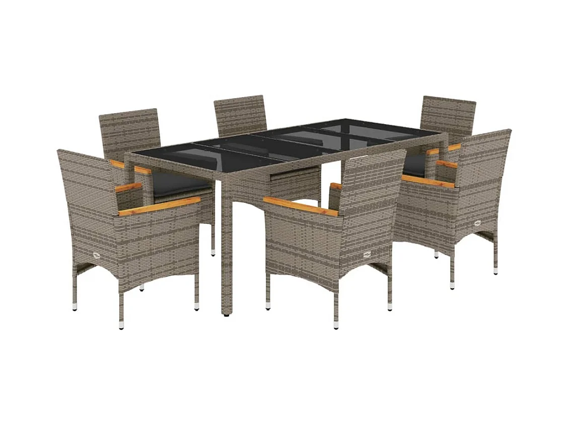 Ensemble à manger de jardin et coussins 7 pcs gris rotin verre