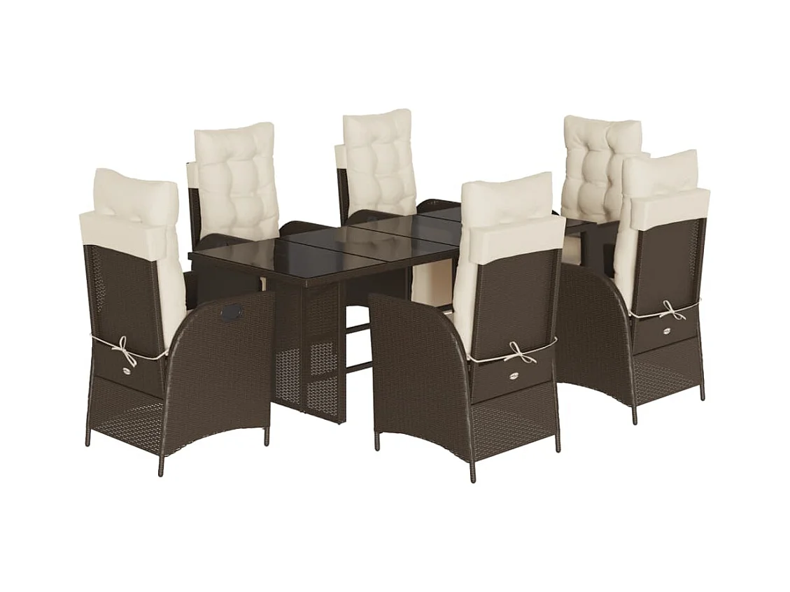 Ensemble à manger de jardin et coussins 7 pcs marron rotin