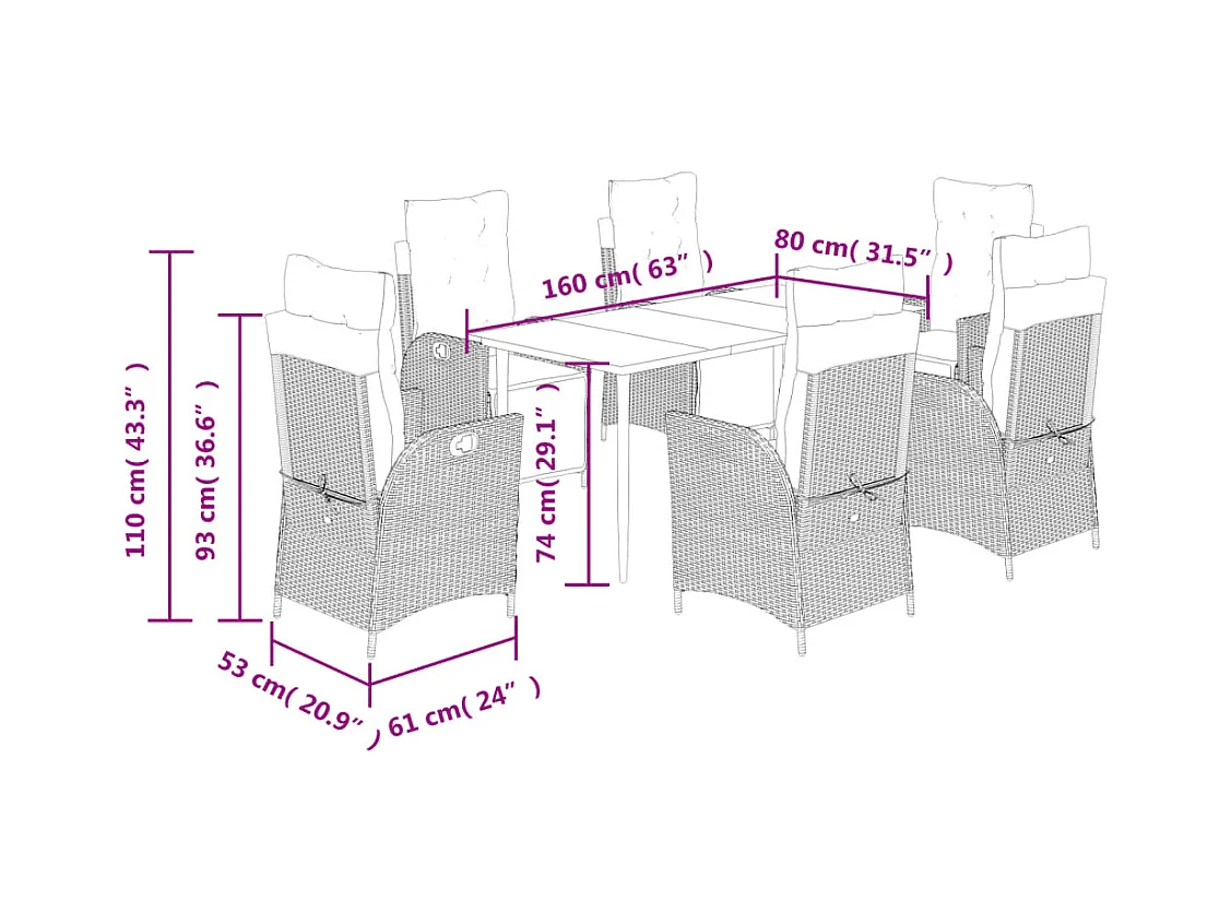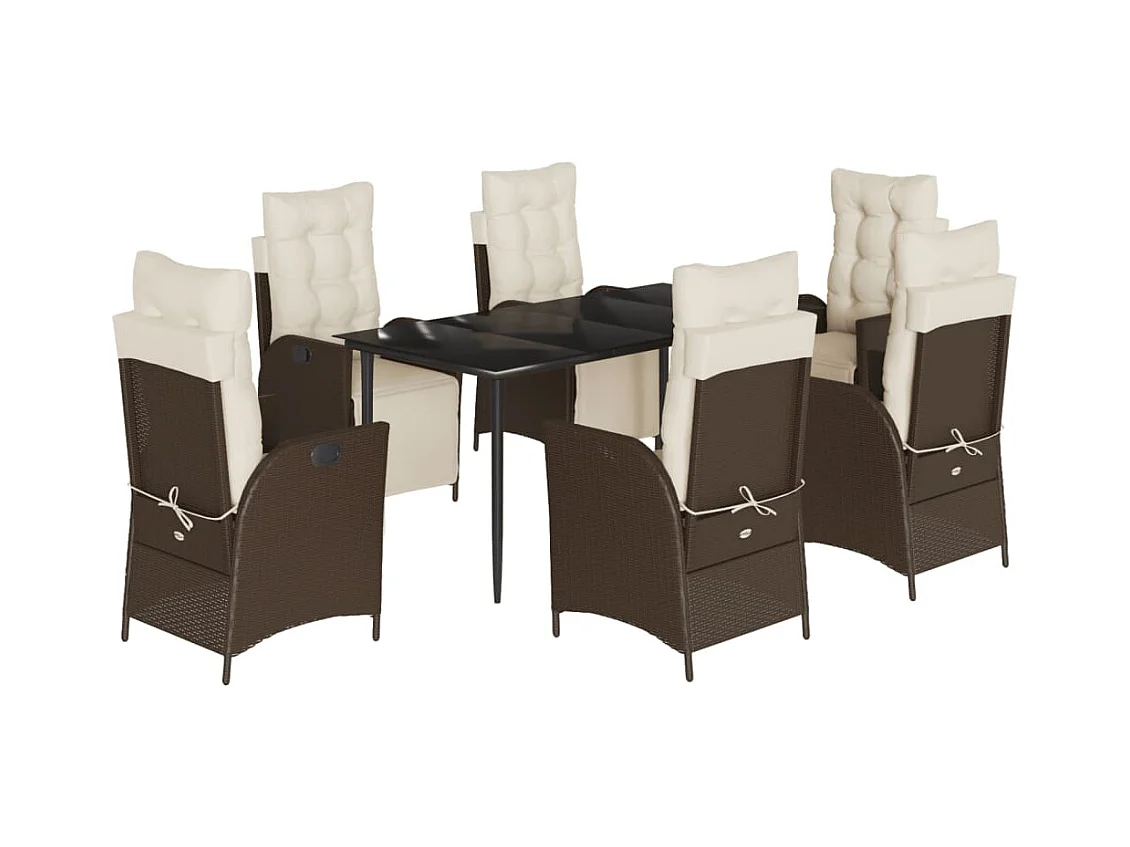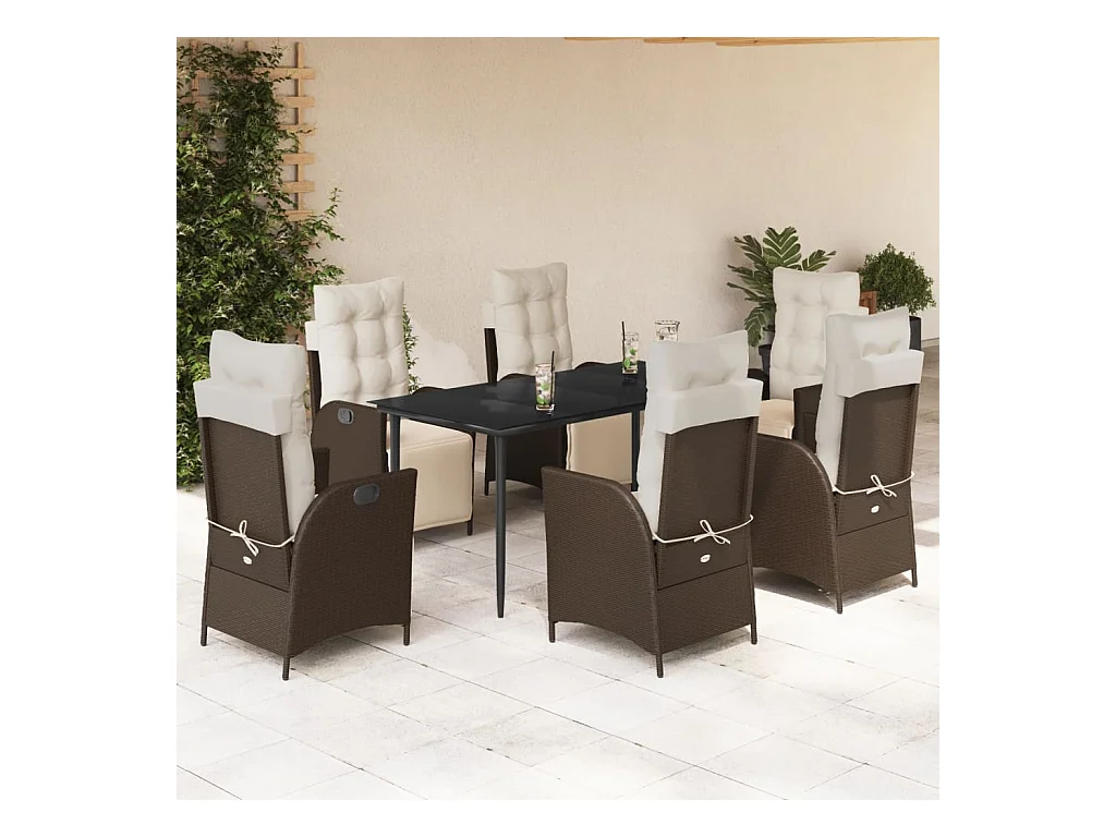Ensemble à manger de jardin et coussins 7 pcs marron rotin
