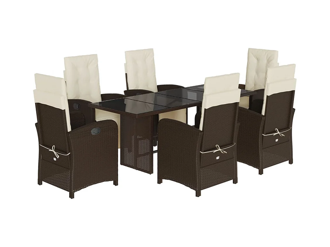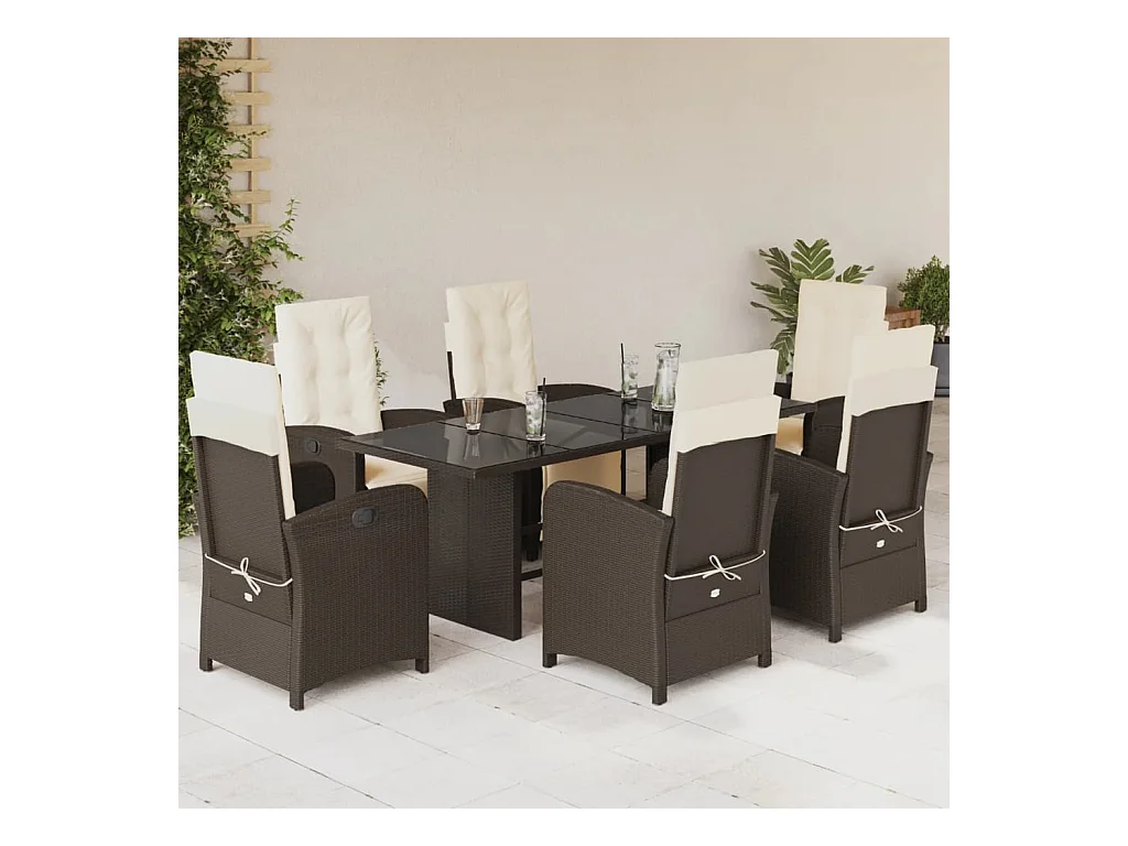 Ensemble à manger de jardin et coussins 7 pcs marron rotin