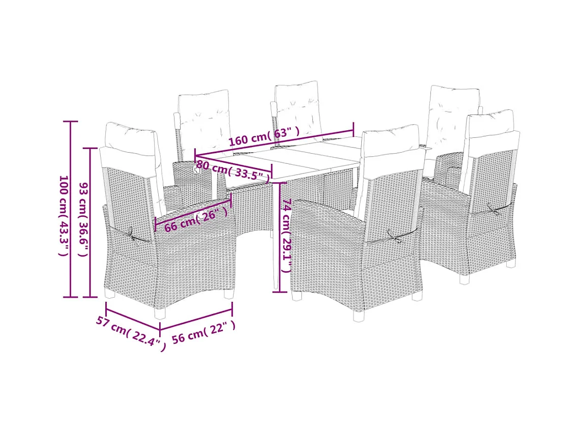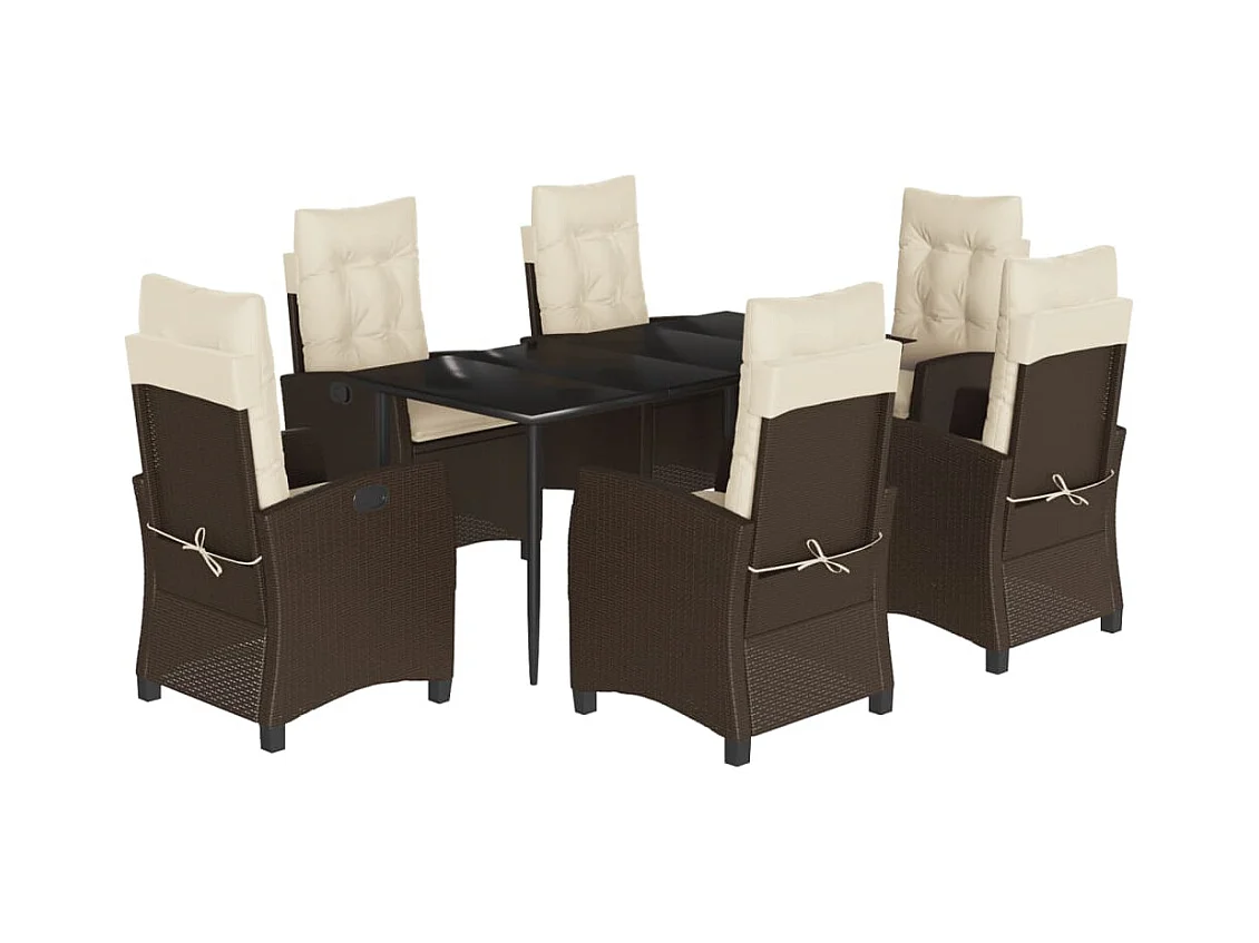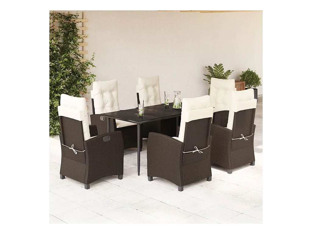 Ensemble à manger de jardin et coussins 7 pcs marron rotin