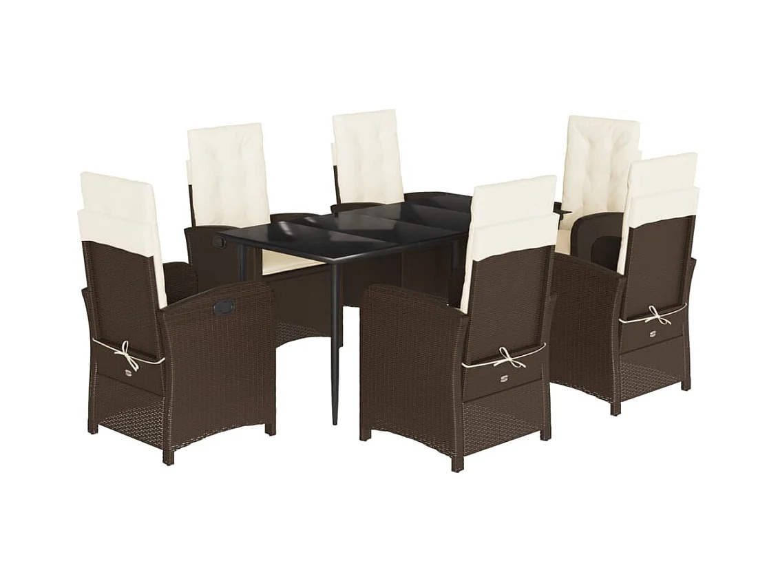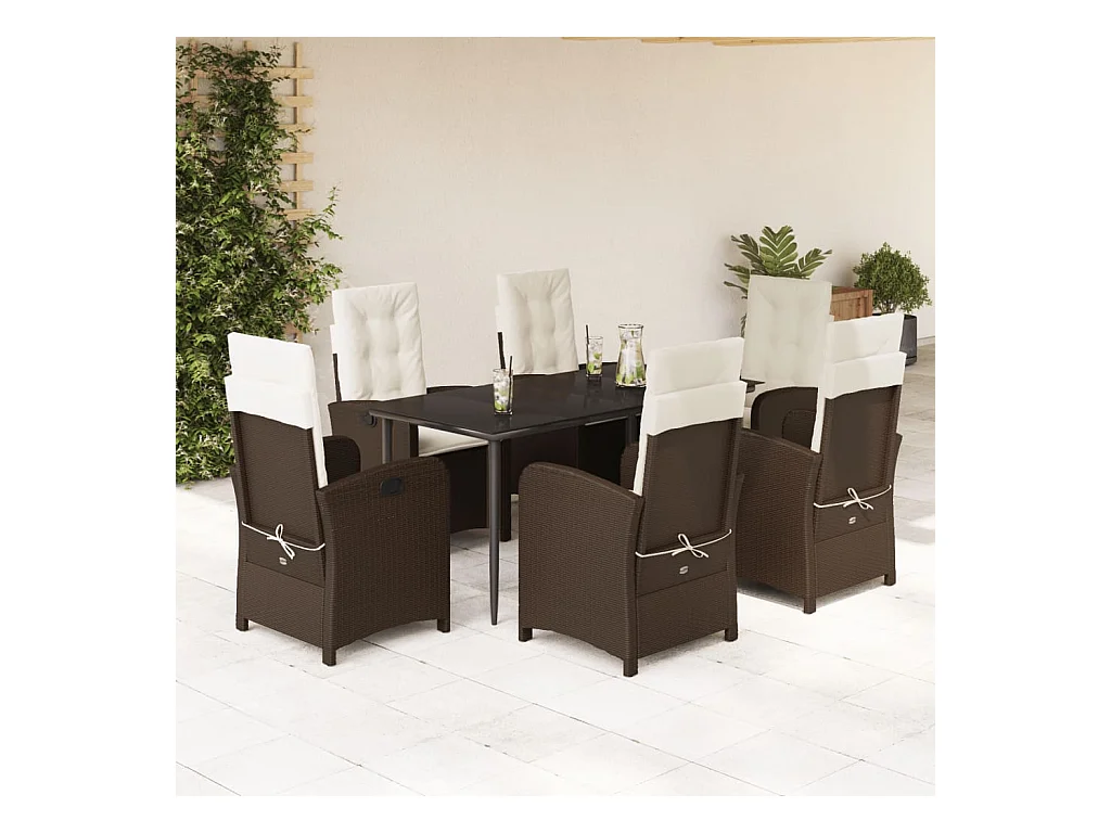 Ensemble à manger de jardin et coussins 7 pcs marron rotin