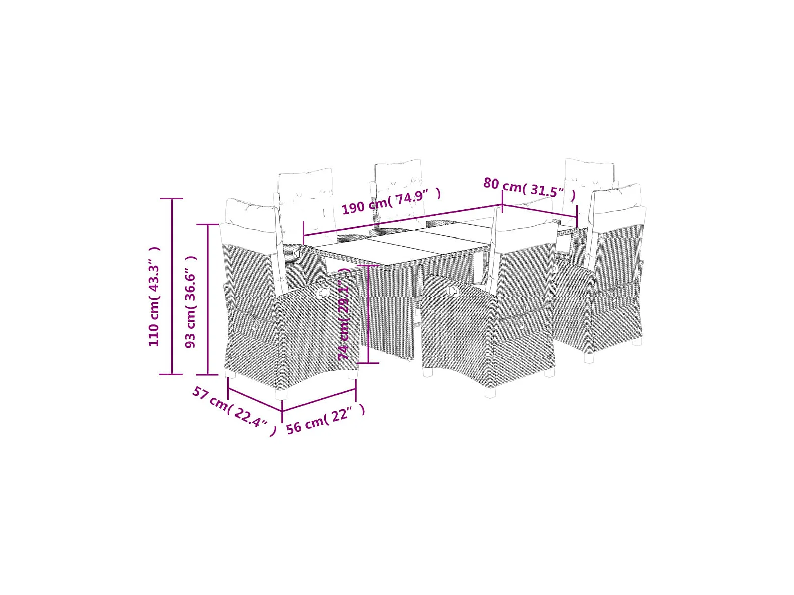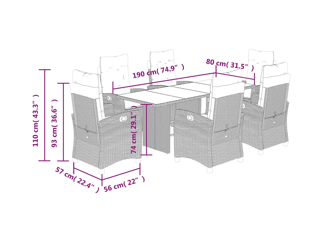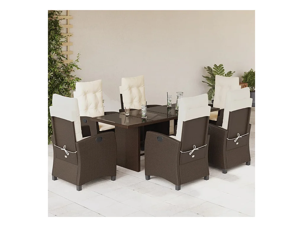 Ensemble à manger de jardin et coussins 7 pcs marron rotin