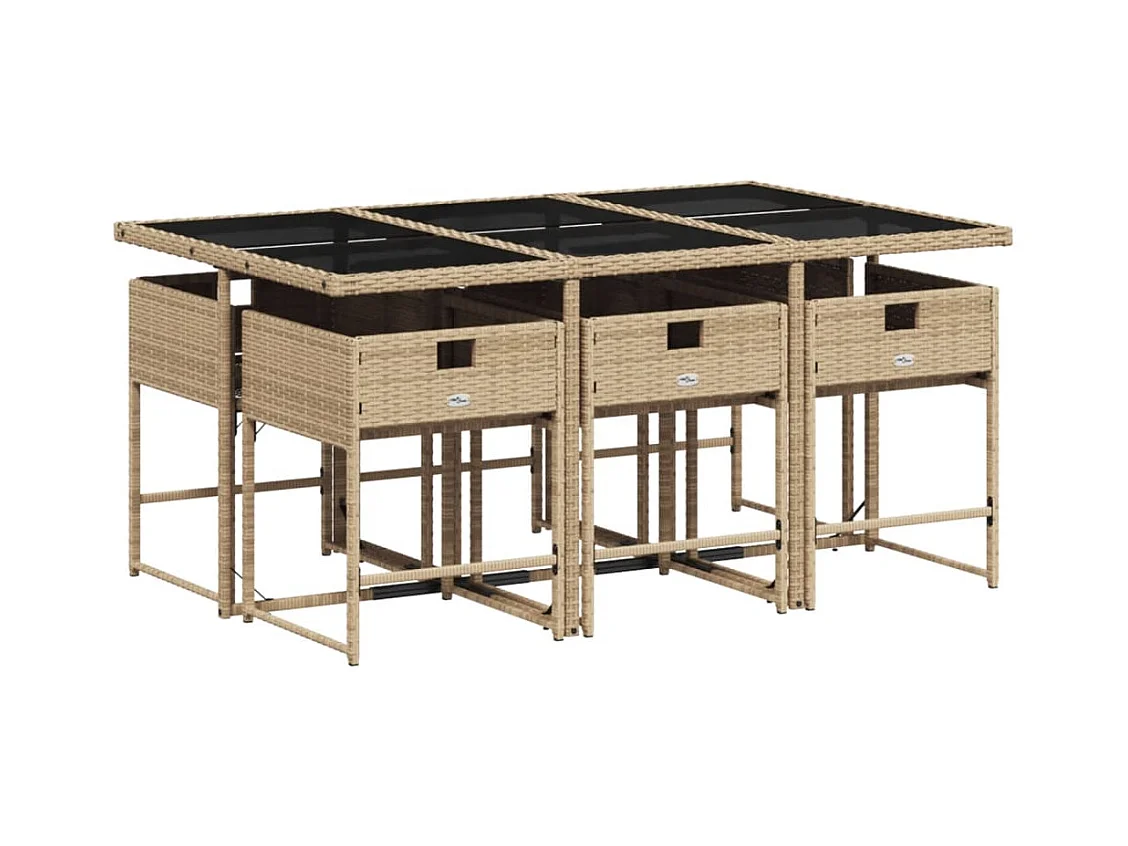 Ensemble à manger de jardin et coussins 7 pièces beige poly rotin