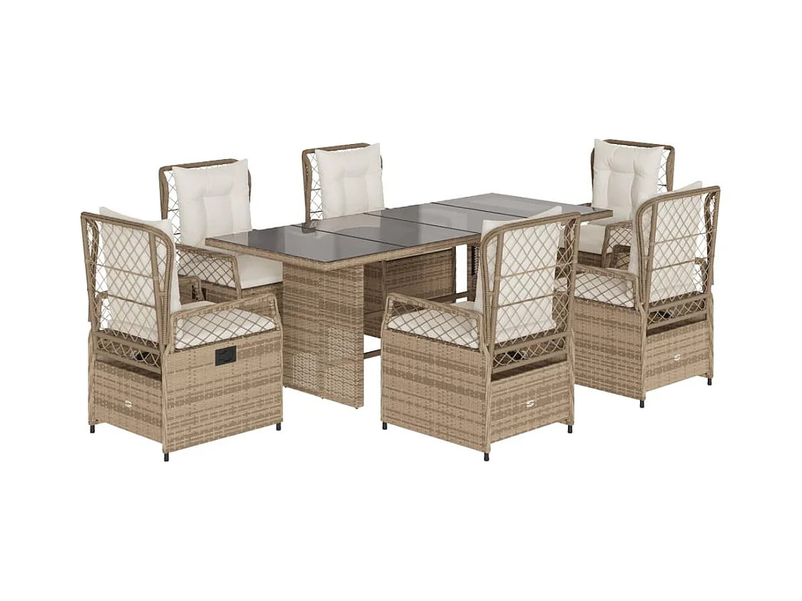 Ensemble à manger de jardin et coussins 7 pièces beige poly rotin