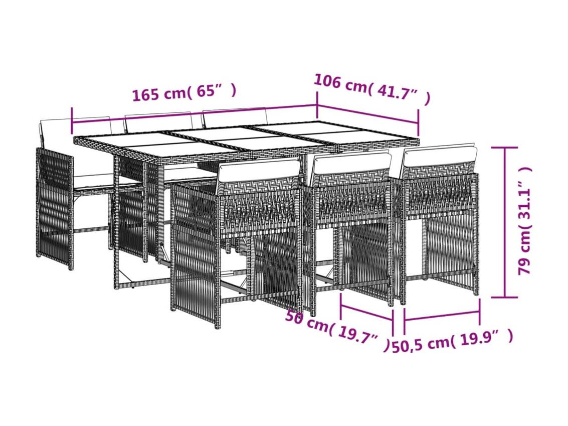 Ensemble à manger de jardin et coussins 7 pièces beige poly rotin