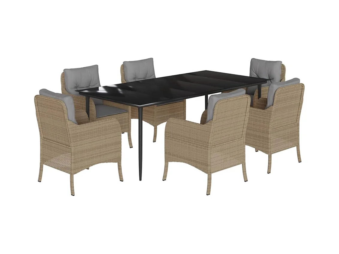 Ensemble à manger de jardin et coussins 7 pièces beige rotin verre
