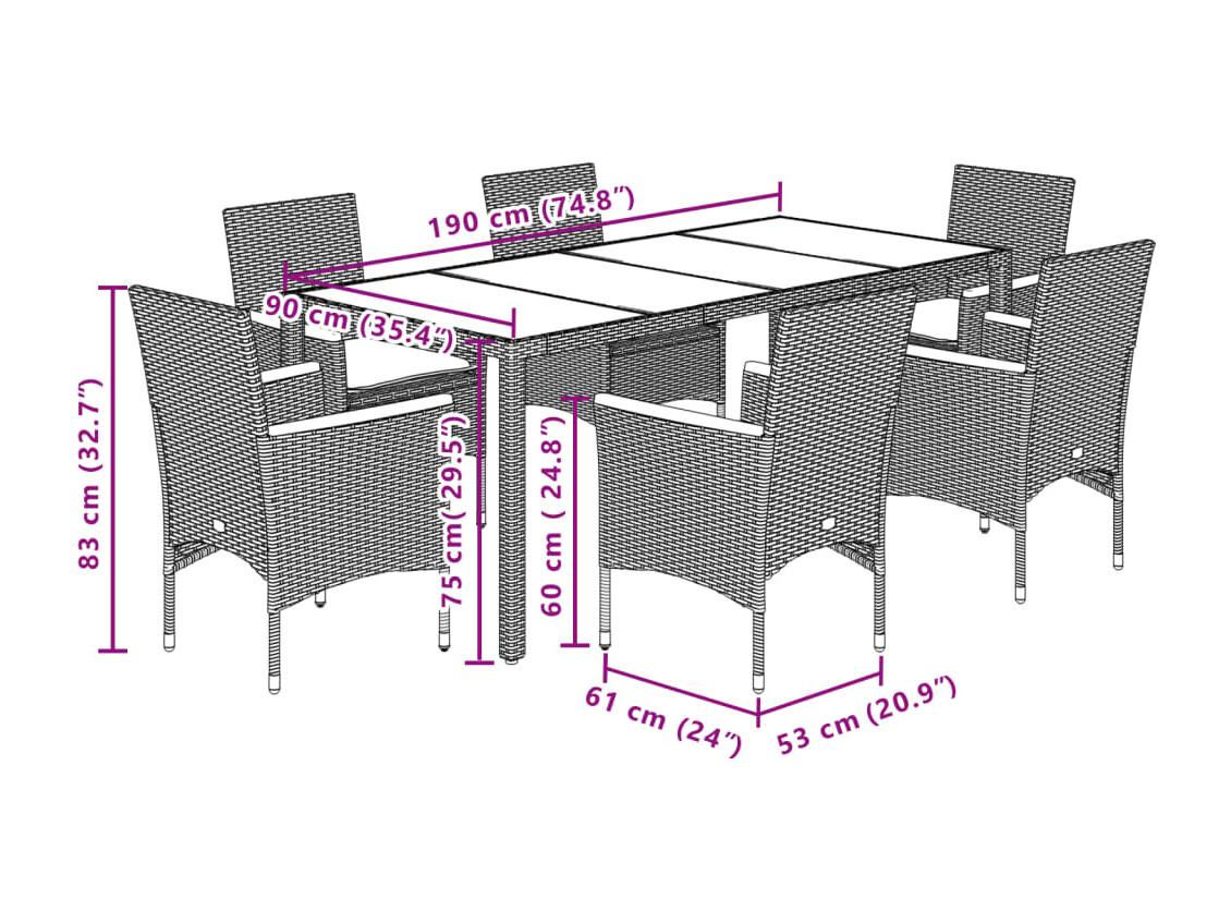 Ensemble à manger de jardin et coussins 7 pièces beige rotin verre