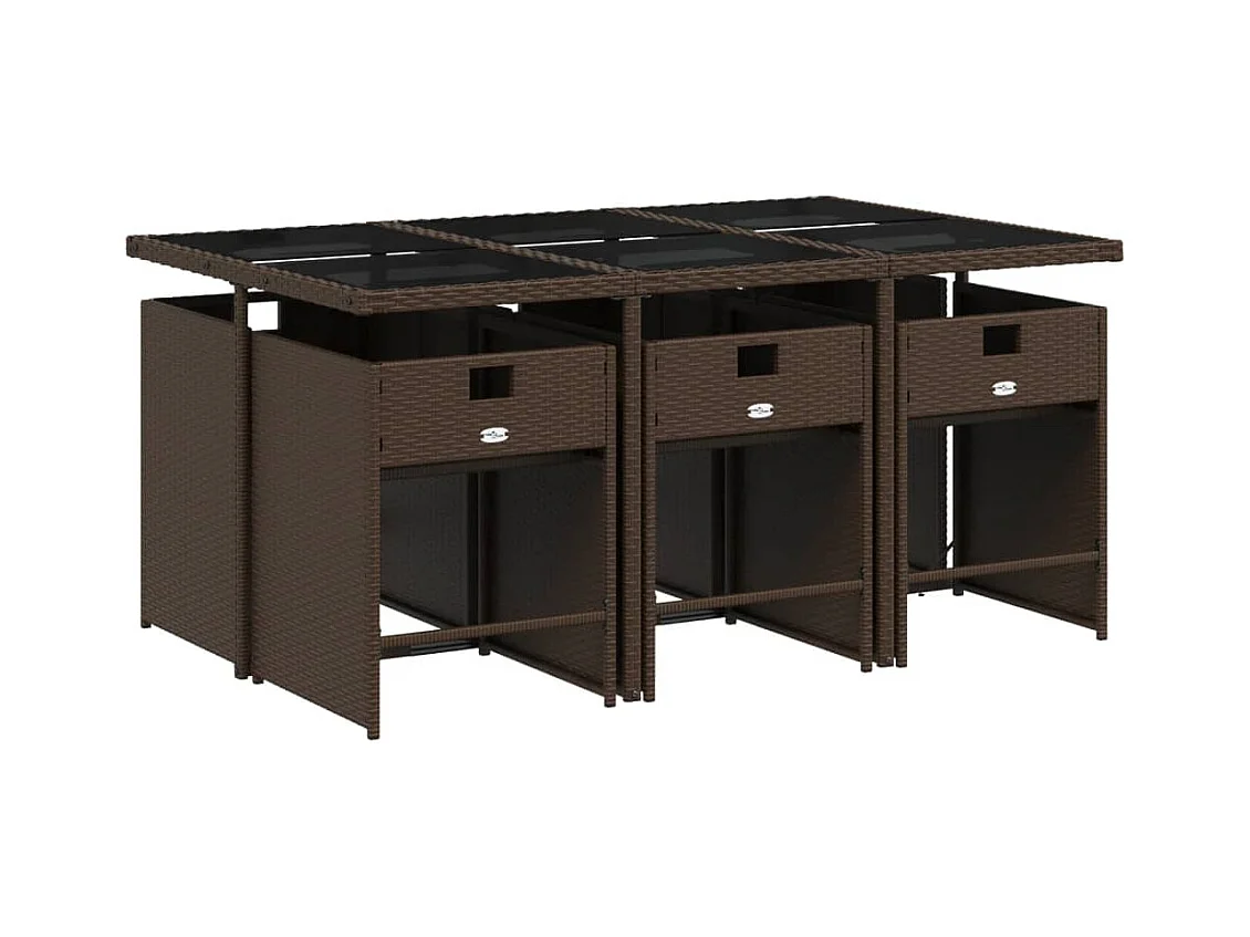 Ensemble à manger de jardin et coussins 7 pièces marron rotin verre