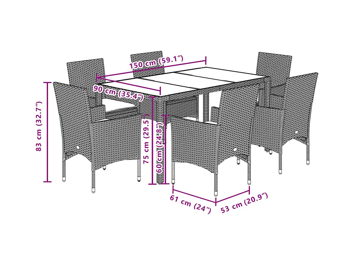 Mobilier à dîner d'extérieur 7 pièces Résine tressée Noir