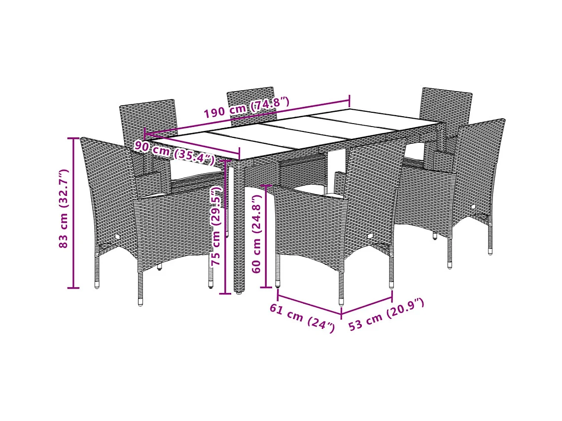 Ensemble à manger de jardin coussins 7 pièces Noir Résine tressée