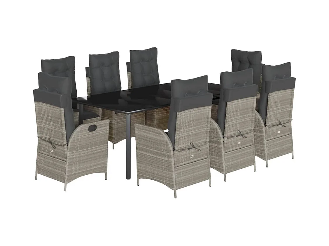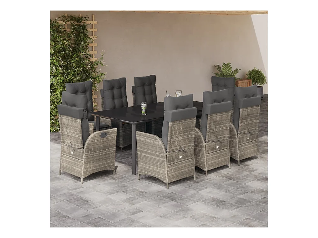 Ensemble à manger de jardin et coussins 9 pcs gris clair rotin