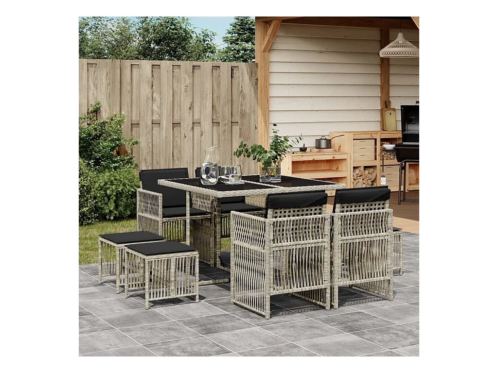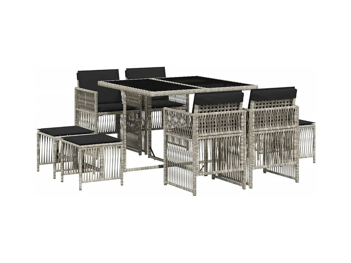 Ensemble à manger de jardin et coussins 9 pcs gris clair rotin FR46244
