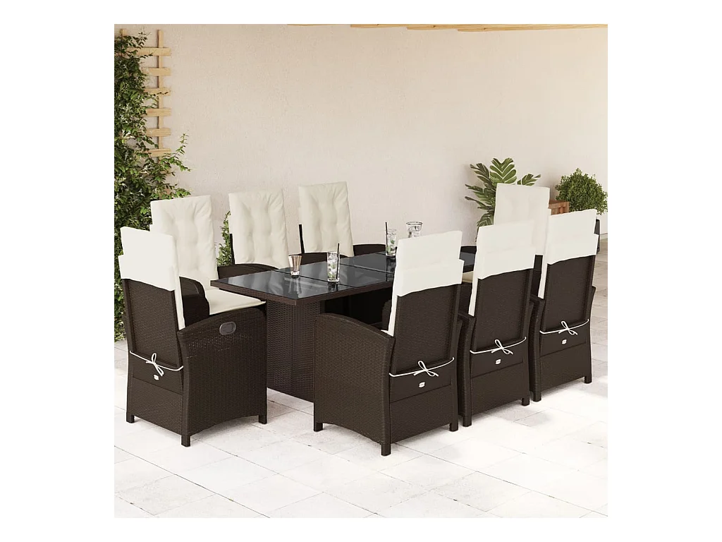 Ensemble de bistro de jardin 9 pcs coussins marron poly rotin
