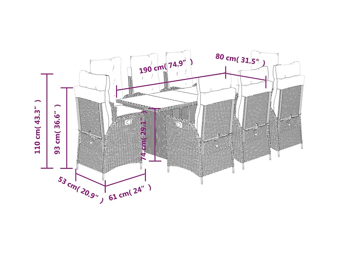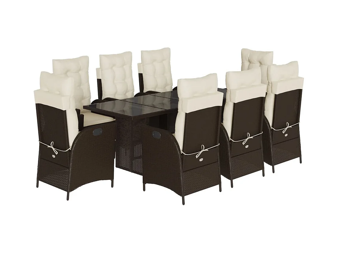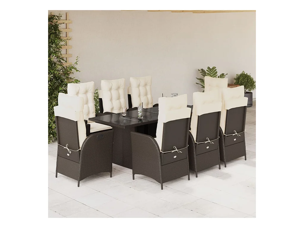 Ensemble à manger de jardin et coussins 9 pcs marron poly rotin