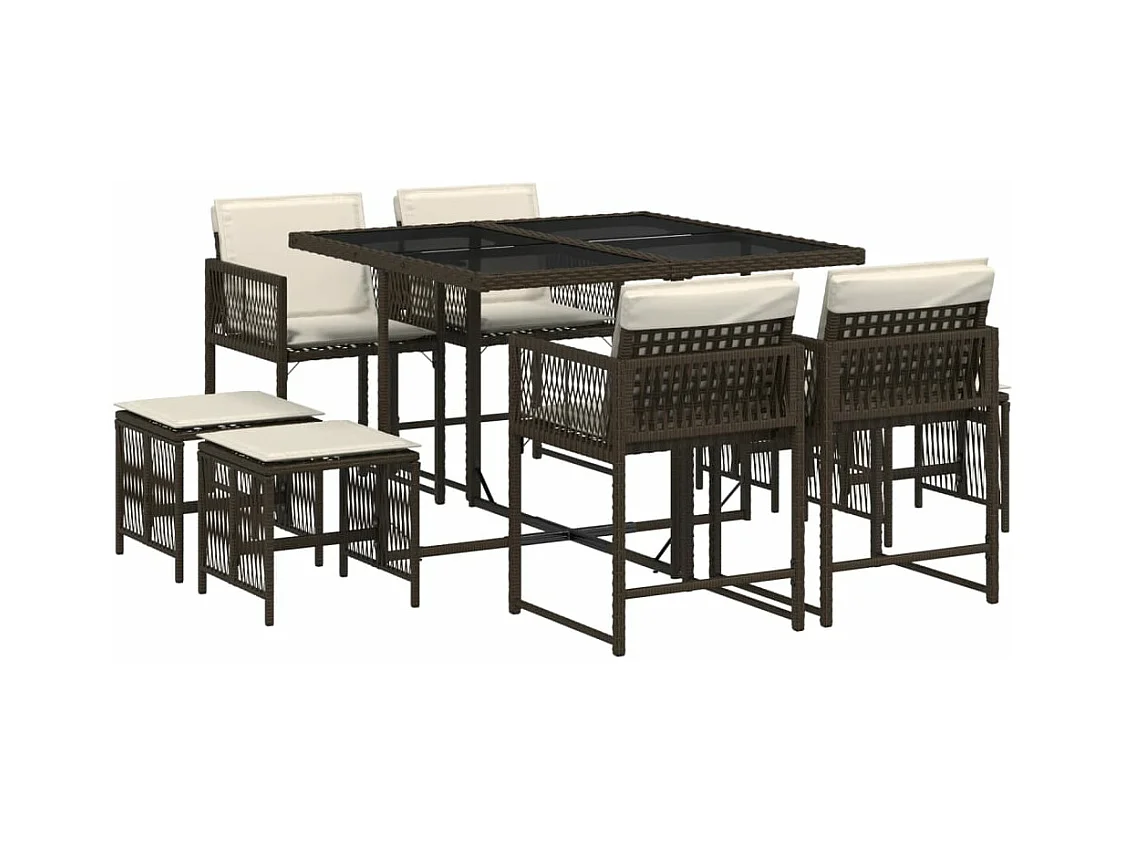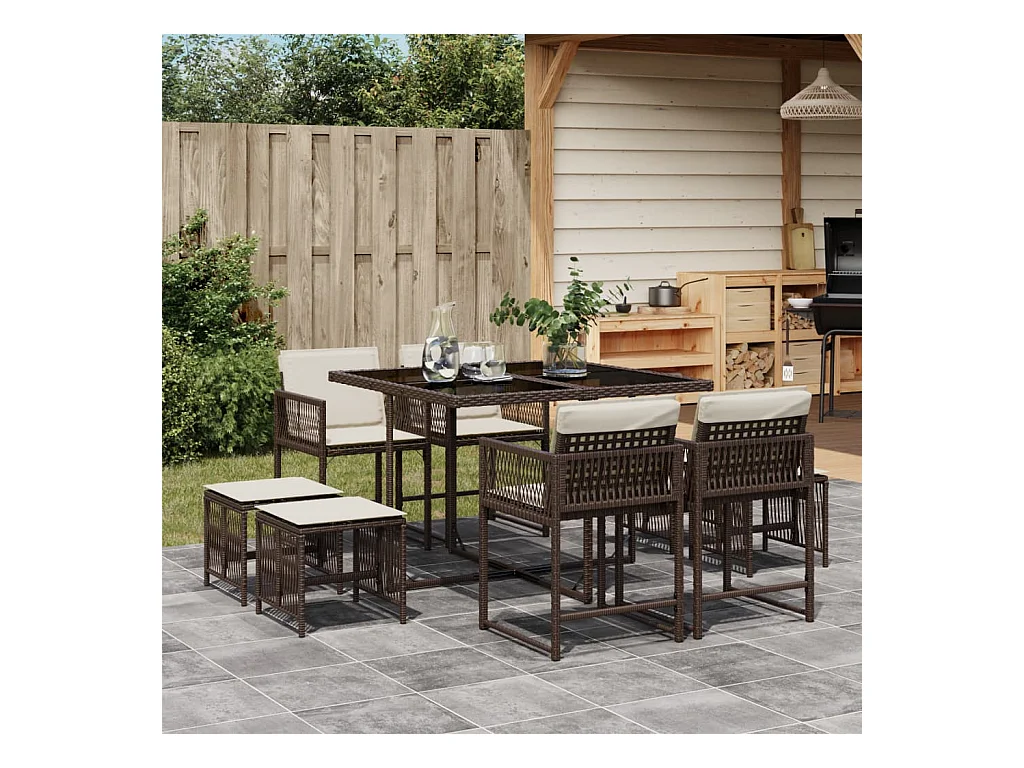 Ensemble à manger de jardin et coussins 9 pcs marron poly rotin FR27543