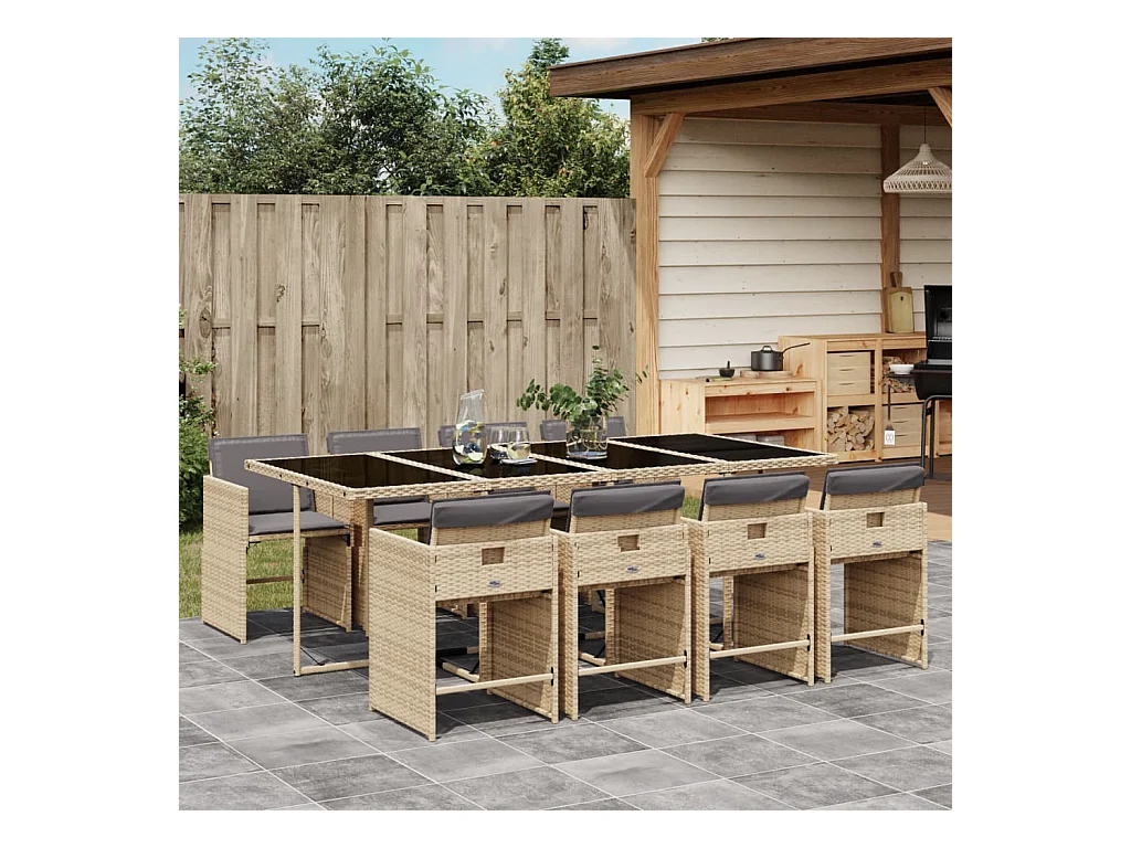 Ensemble à manger de jardin et coussins 9 pcs mélange beige