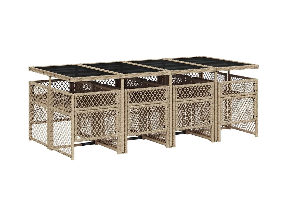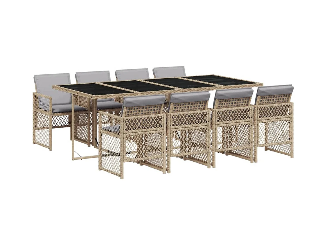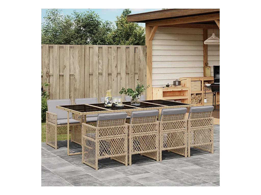 Ensemble à manger de jardin et coussins 9 pièces beige Poly rotin