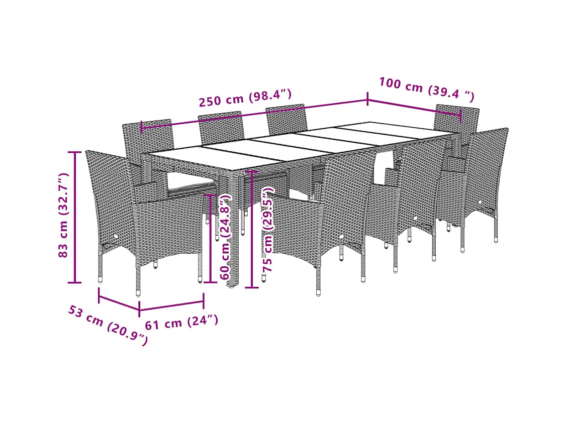 Ensemble à manger de jardin et coussins 9 pièces beige Poly rotin