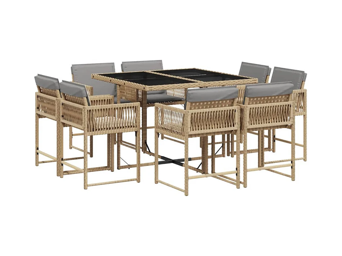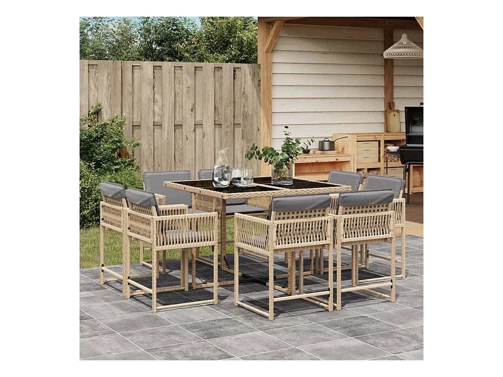Ensemble à manger de jardin et coussins 9 pièces beige Poly rotin