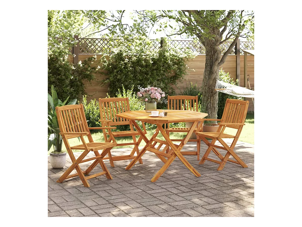 Ensemble à manger de jardin pliable 5 pcs bois massif d’acacia FR48460