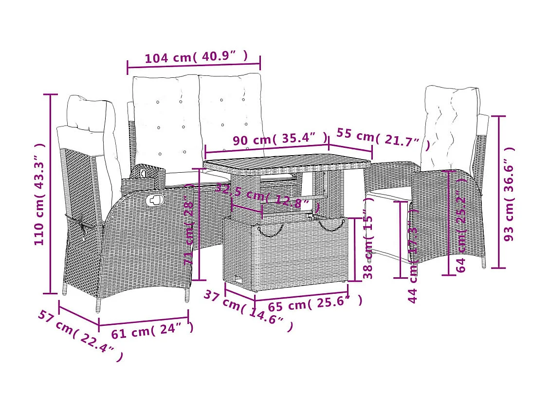 Ensemble à manger jardin 4pcs et coussins Gris Résine tressée