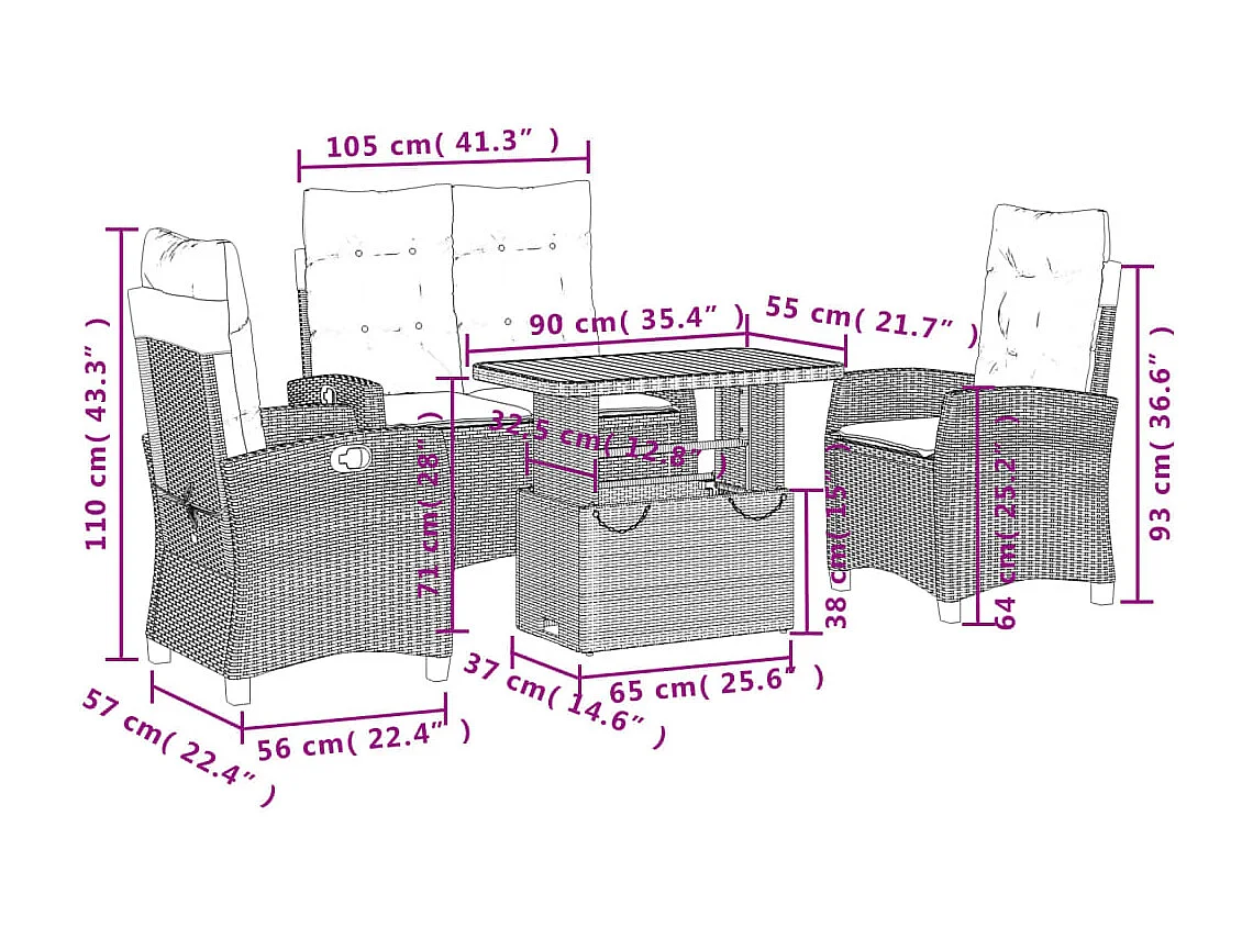 Ensemble à manger de jardin 3 pcs coussins résine tressée acier BE91741