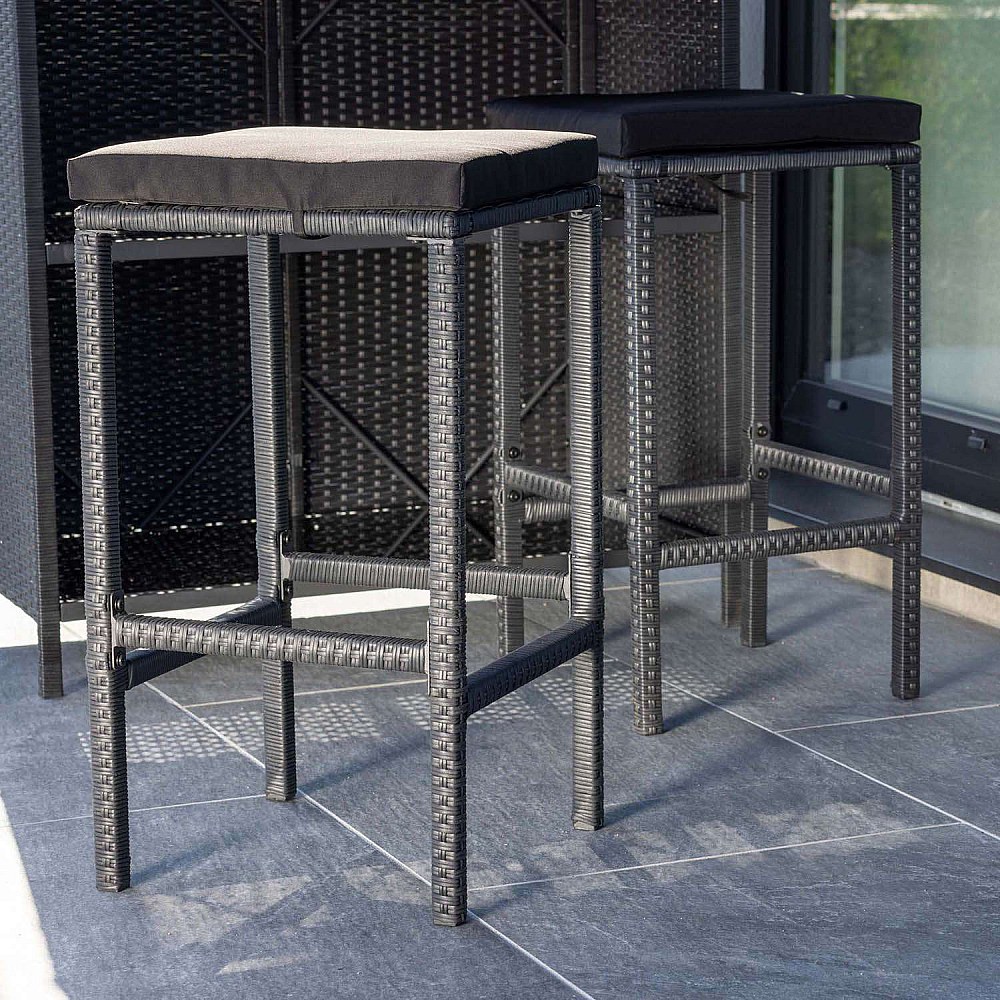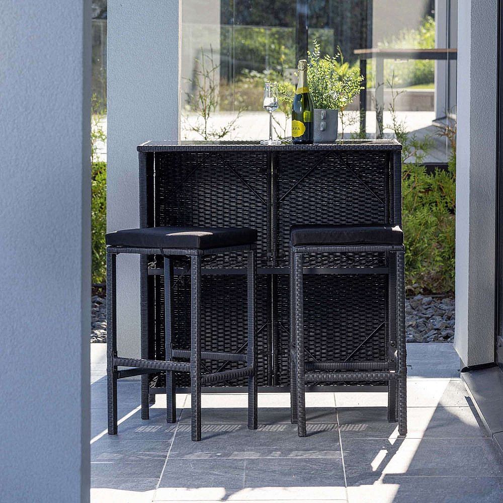 Ensemble de bar de jardin 3 pcs et coussins Résine tressée Noir GFDF64325