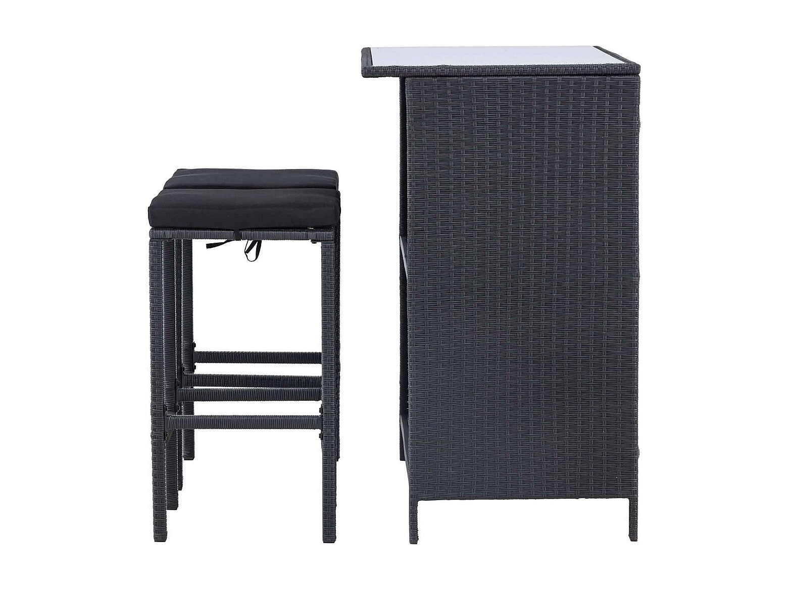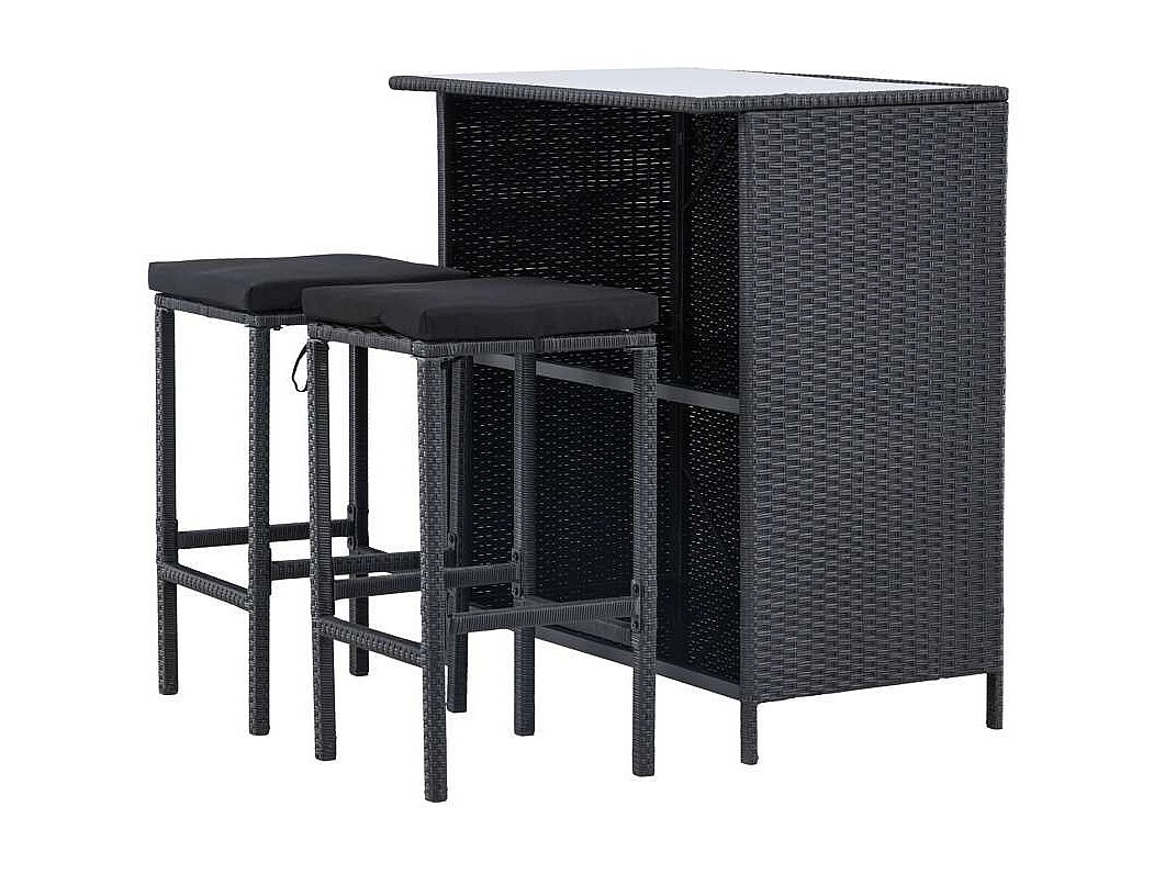 Ensemble de bar de jardin 3 pcs et coussins Résine tressée Noir GFDF28148