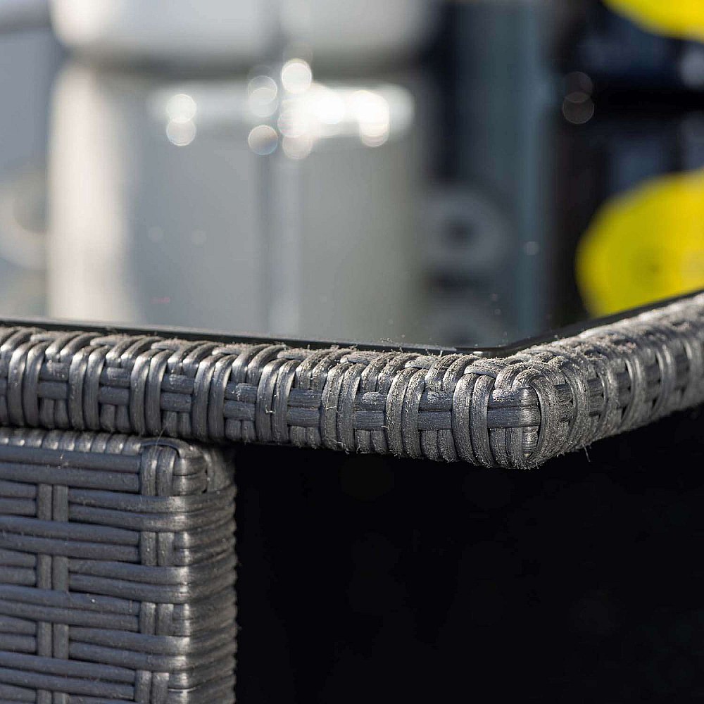 Lou Table de bar et dessus en verre noir 185x80x110 cm poly rotin